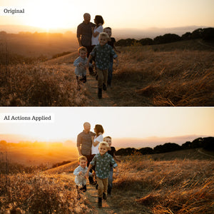 Like our AI Adaptive Presets, our AI Actions are powered by Adobe Sensei AI! Sensei allows our pro settings to be mapped to your image-specific subject, background, or sky in just a click!